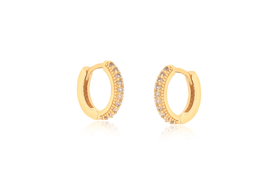 BRINCO BANHADO EM OURO, PONTO DE LUZ 8mm, LINHA TRADICIONAL