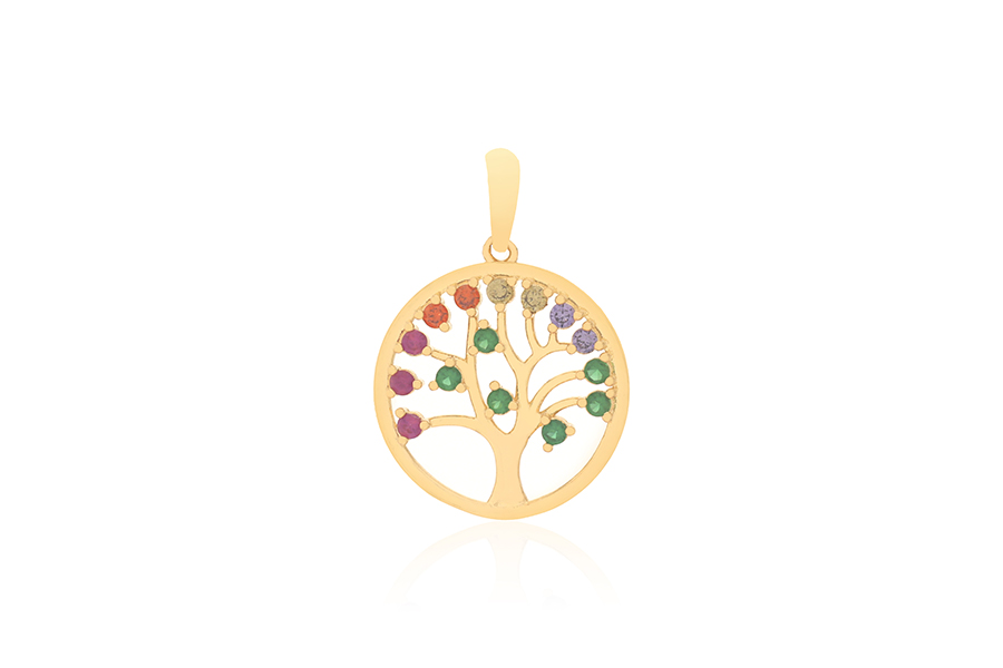 PINGENTE BANHADO EM OURO, ÁRVORE DA VIDA 20mm DIÂMETRO, COLORIDA