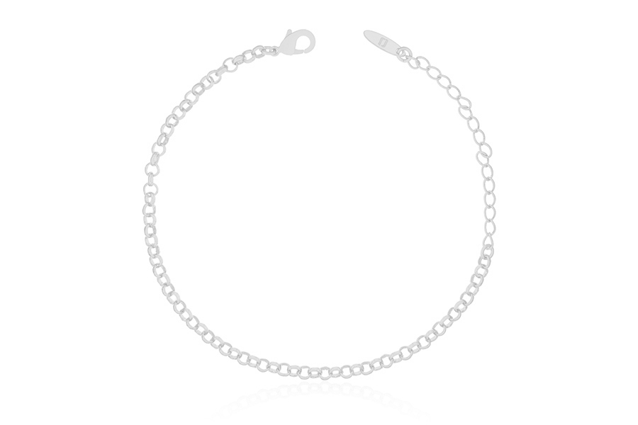 PULSEIRA BANHADA EM RÓDIO BRANCO, ELO PORTUGUÊS 2,50mm, 16cm COMPRIMENTO, EXTENSOR 5cm COMPRIMENTO, PONTO DE LUZ, GRATIDÃO E AMOR 12mm DIÂMETRO