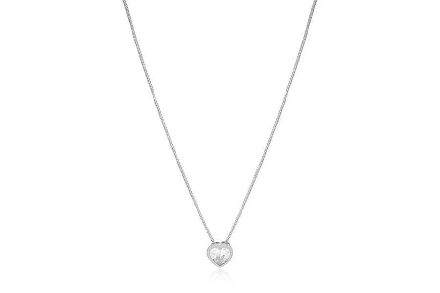 GARGANTILHA BANHADA EM RÓDIO BRANCO, ELO VENEZIANA 0,80mm, 40cm COMPRIMENTO, EXTENSOR 5cm DE COMPRIMENTO E CORAÇÃO 7mm LARGURA