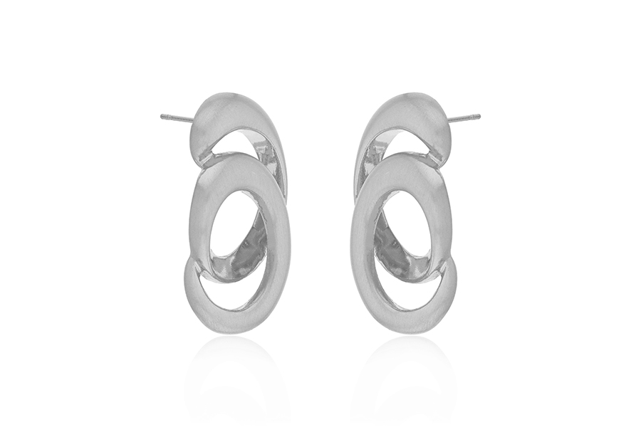 BRINCO BANHADO EM RÓDIO BRANCO, ESPIRAL, LISO E ACETINADO, 36mm ALTURA, LINHA OUSE