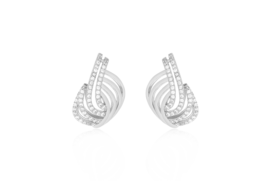 BRINCO EM PRATA, GOTA CRAVEJADA COM BORDAS VAZADAS, 9mm ALTURA