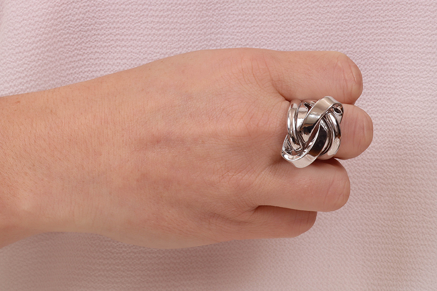 ANEL BANHADO EM RÓDIO BRANCO, FORMATO NAVETE, 37mm LARGURA, COM ZIRCÔNIAS TRAPÉZIO