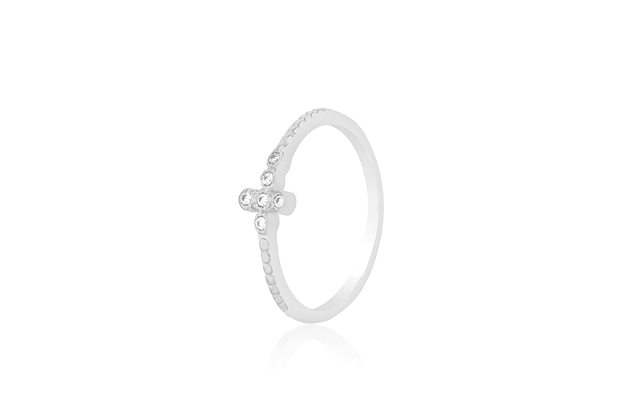 ANEL BANHADO EM RÓDIO BRANCO, FORMATO NAVETE, 37mm LARGURA, COM ZIRCÔNIAS TRAPÉZIO