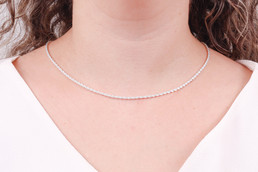 CORRENTE BANHADA EM PRATA LEVE, ELO CORDA 2,50mm, 45cm COMPRIMENTO, EXTENSOR 5cm E PESO 8,70g
