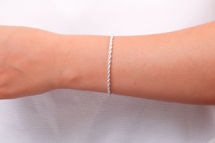 PULSEIRA BANHADA EM PRATA LEVE, CORRENTE ELO CORDA 3mm, 17cm COMPRIMENTO, EXTENSOR 5cm E PESO 5,30g