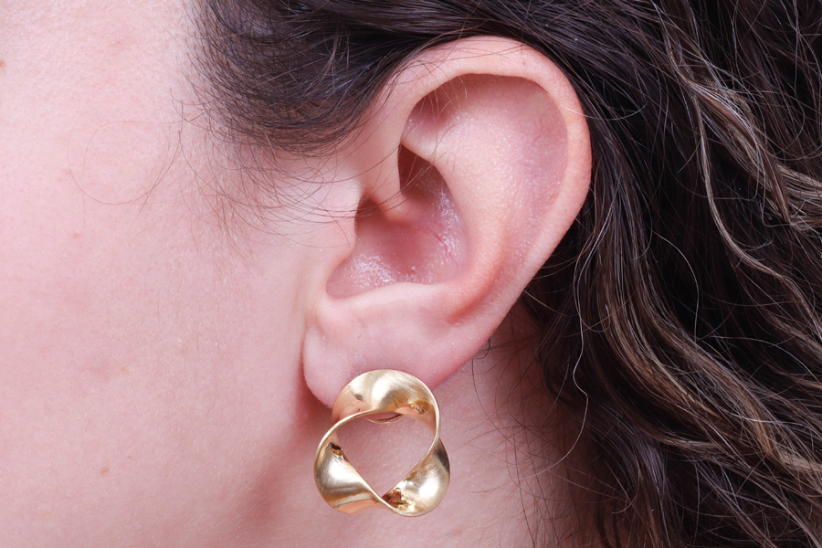 BRINCO BANHADO EM OURO, ARGOLA TRIANGULAR 22mm ALTURA, LISO OU ACETINADO, PROVIN OPAC