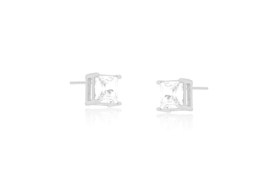 BRINCO BANHADO EM PRATA LEVE, PONTO DE LUZ QUADRADO 6mm