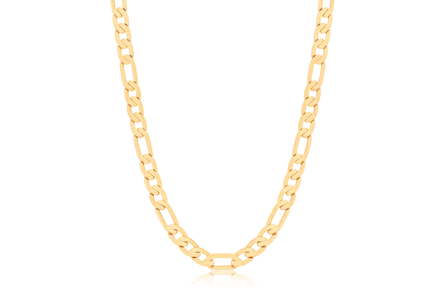 CORRENTE BANHADA EM OURO, ELO 5,70mm LARGURA, 60cm COMPRIMENTO, SEM EXTENSOR E PESO 17,80g