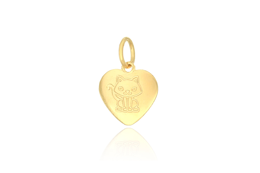 PINGENTE BANHADO EM OURO, CORAÇÃO, GATO 11mm LARGURA