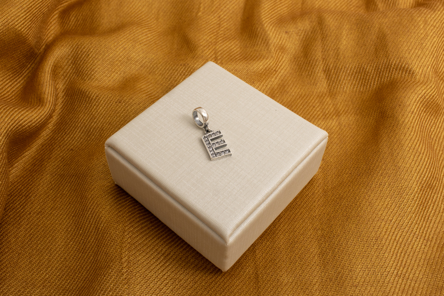 PINGENTE EM PRATA, LETRA ''E'' CRAVEJADA