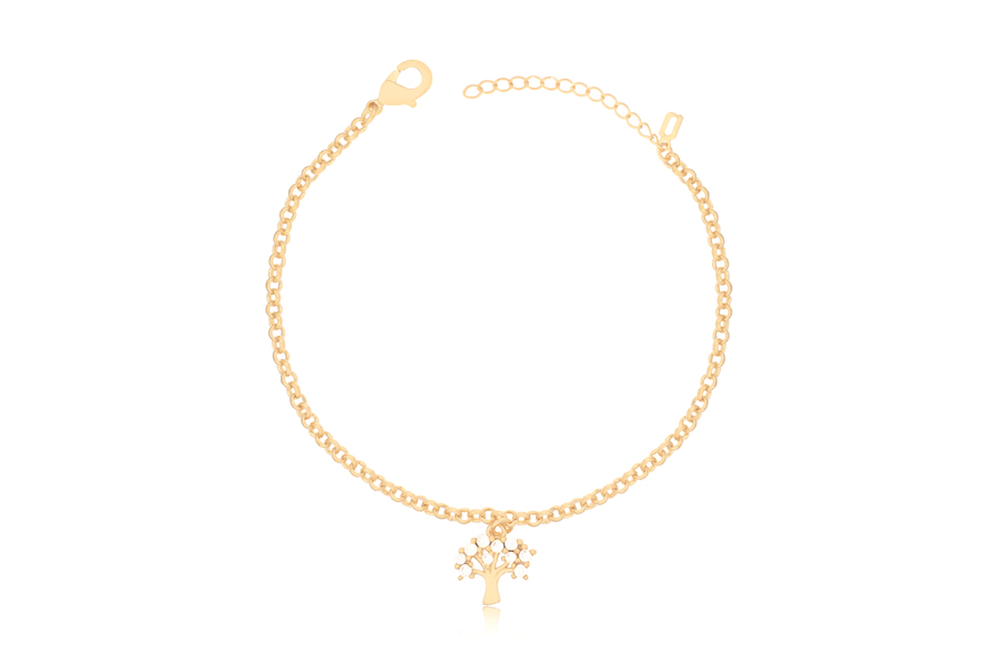 PULSEIRA BANHADA EM OURO, ELO PORTUGUÊS 2,50mm, 16cm COMPRIMENTO, EXTENSOR 5cm E ÁRVORE DA VIDA 11mm LARGURA