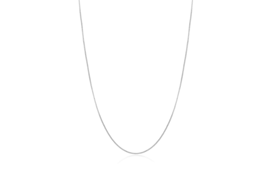 CORRENTE BANHADA EM PRATA LEVE, ELO VENEZIANA 0,80mm, 45cm COMPRIMENTO, EXTENSOR 5cm E PESO 2,20g