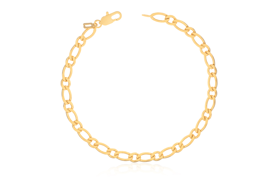 PULSEIRA BANHADA EM OURO, CORRENTE ELO 4,90mm, 19cm, 20cm, 21cm E 22cm COMPRIMENTO, SEM EXTENSOR PESO 5,20g