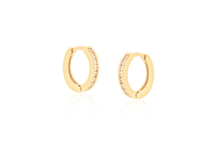 BRINCO BANHADO EM OURO, ARGOLINHA 13mm DIÂMETRO, COM 8 ZIRCÔNIAS