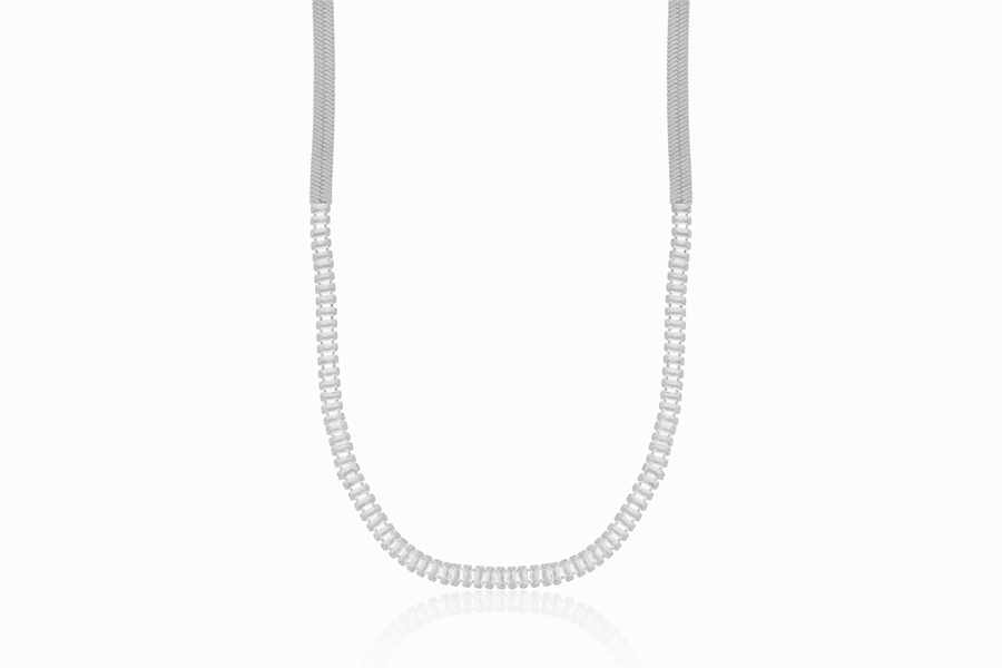 CHOKER BANHADA EM RÓDIO BRANCO, ZIRCÔNIA BAGUETE, ELO LACRAIA LAMINADA 4mm, 35cm COMPRIMENTO, EXTENSOR 10cm