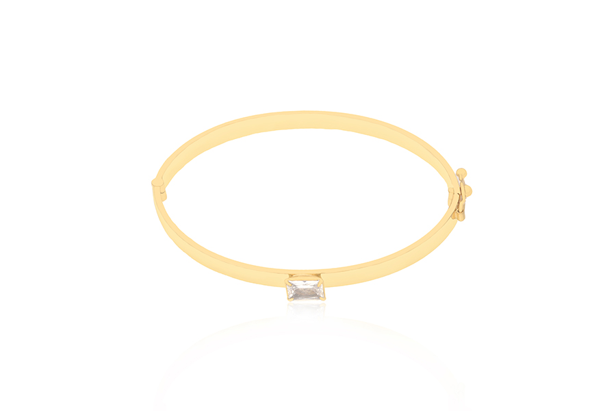 BRACELETE BANHADO EM OURO, COM 1 ZIRCÔNIA RETANGULAR