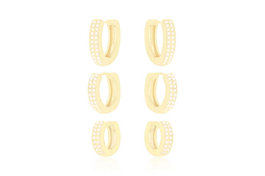 BRINCO BANHADO EM OURO, ARGOLA TRIANGULAR 22mm ALTURA, LISO OU ACETINADO, PROVIN OPAC