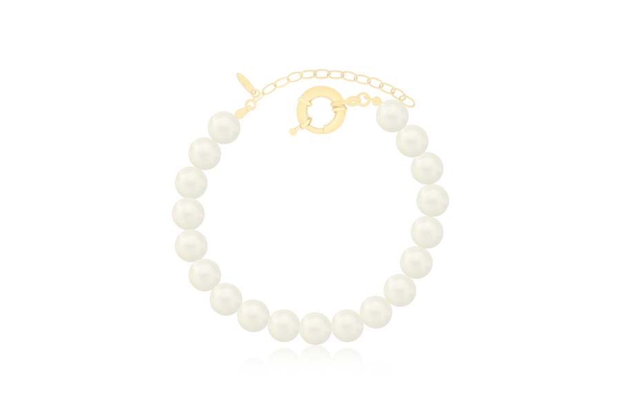 PULSEIRA BANHADA EM OURO, PÉROLA SHELL 8mm, 17cm COMPRIMENTO E EXTENSOR 5cm