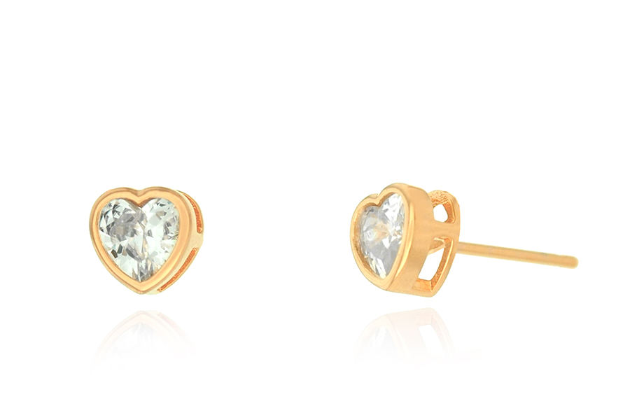 BRINCO BANHADO EM OURO, CORAÇÃO ZIRCÔNIA 4X4mm, PARA QUALQUER COR DE PEDRA