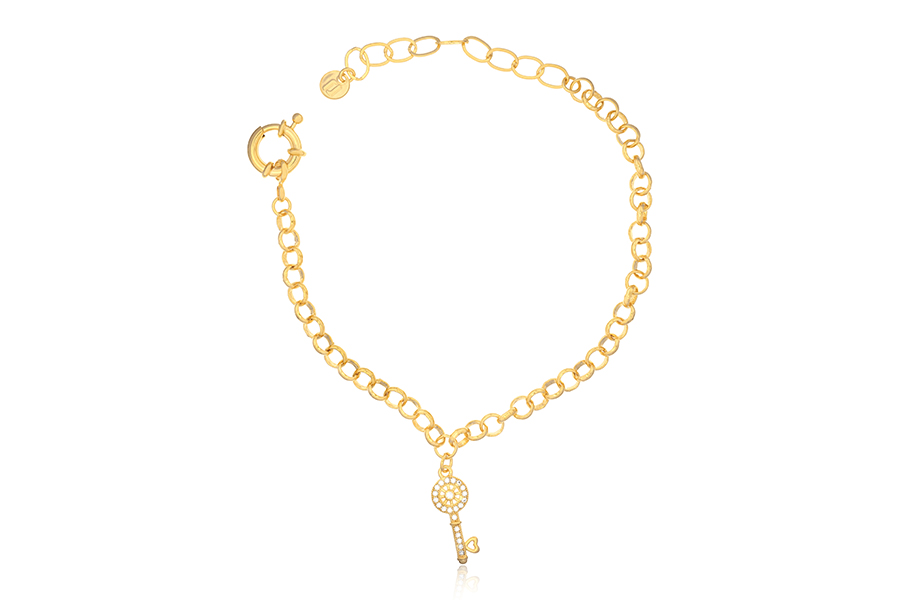 PULSEIRA BANHADA EM OURO, ELO PORTUGUÊS 5mm, 17cm COMPRIMENTO, EXTENSOR 5cm COMPRIMENTO E CHAVE 20mm COMPRIMENTO