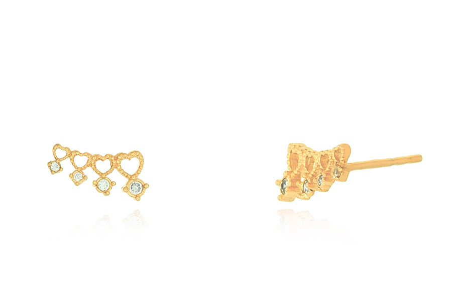 BRINCO BANHADO EM OURO, CORAÇÕES 10mm COMPRIMENTO