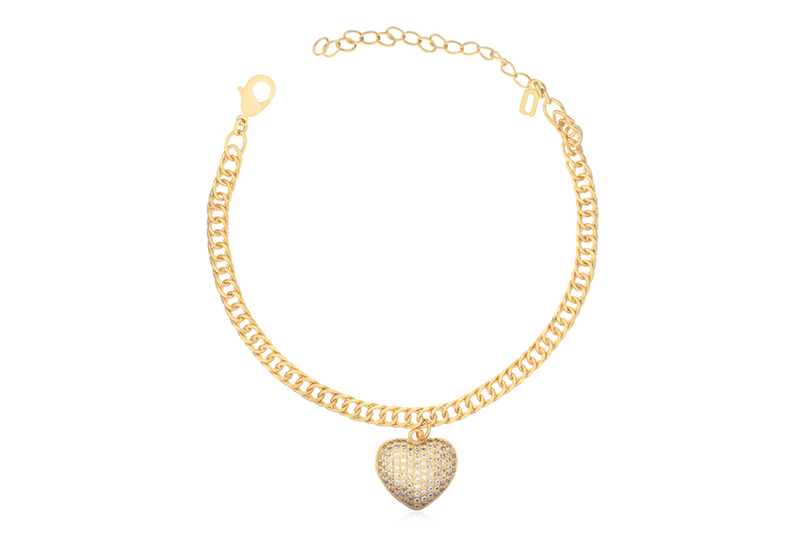 PULSEIRA BANHADA EM OURO, ELO GRUMET DUPLO 4mm LARGURA, CORAÇÃO 15mm LARGURA, 17cm COMPRIMENTO E EXTENSOR 5cm COMPRIMENTO