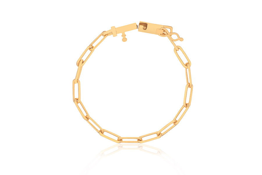 PULSEIRA BANHADA EM OURO, CORRENTE ELO CARTIER 12x4mm, 19cm COMPRIMENTO E FECHO CANHÃO