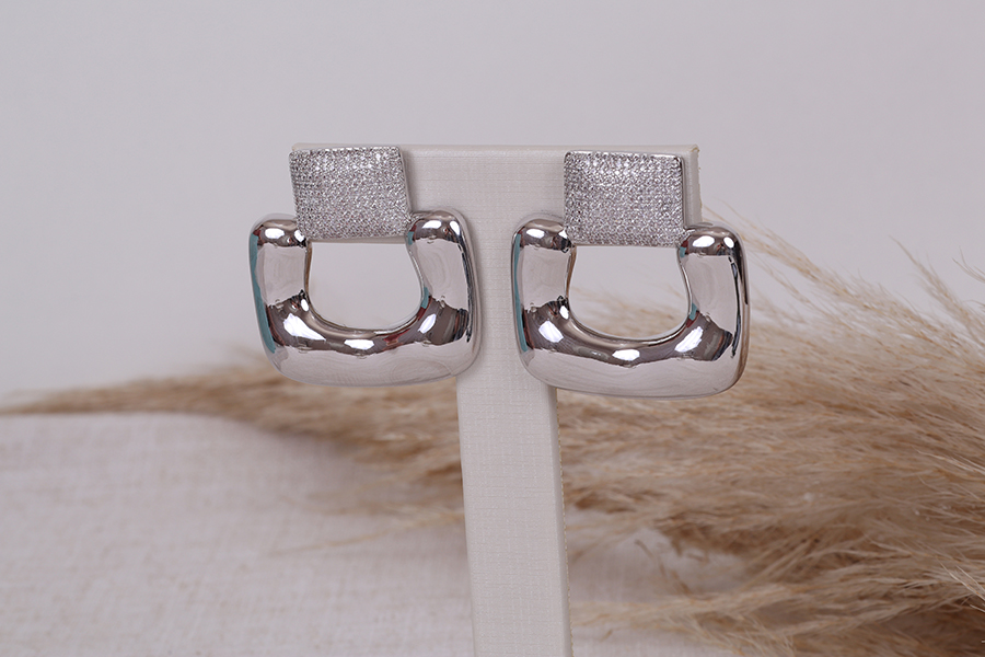 BRINCO BANHADO EM RÓDIO BRANCO, INFINITO 11mm LARGURA COM ZIRCÔNIAS