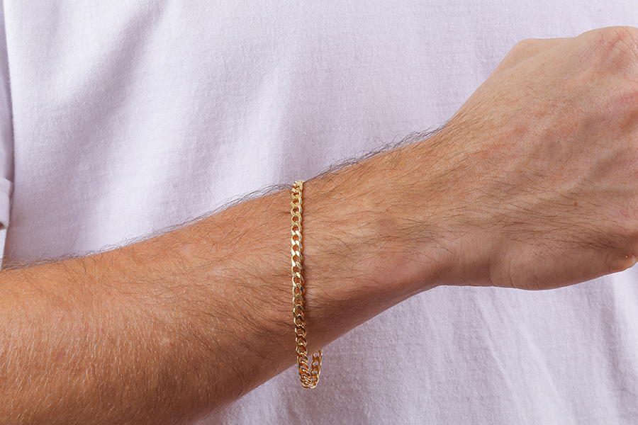 PULSEIRA BANHADA EM OURO, CORRENTE ELO GRUMET 4,50mm, 18cm, 19cm E 20cm, PESO 6,50g