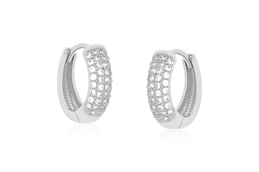 BRINCO EM PRATA, ARGOLINHA CLICK 11,80mm DIÂMETRO, ARO 1,80mm LARGURA, 1 FILEIRA DE ZIRCÔNIAS