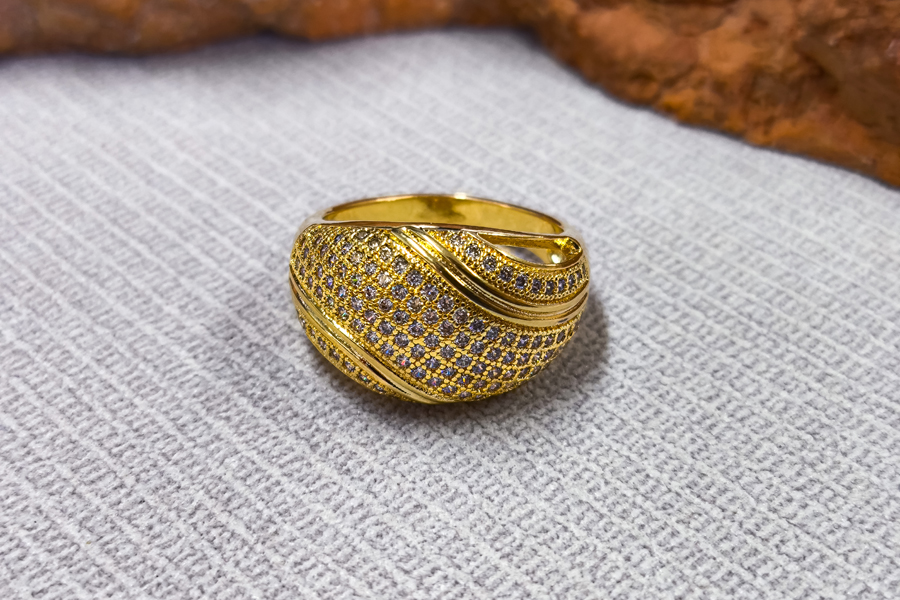 ANEL BANHADO EM OURO, COM ZIRCÔNIAS