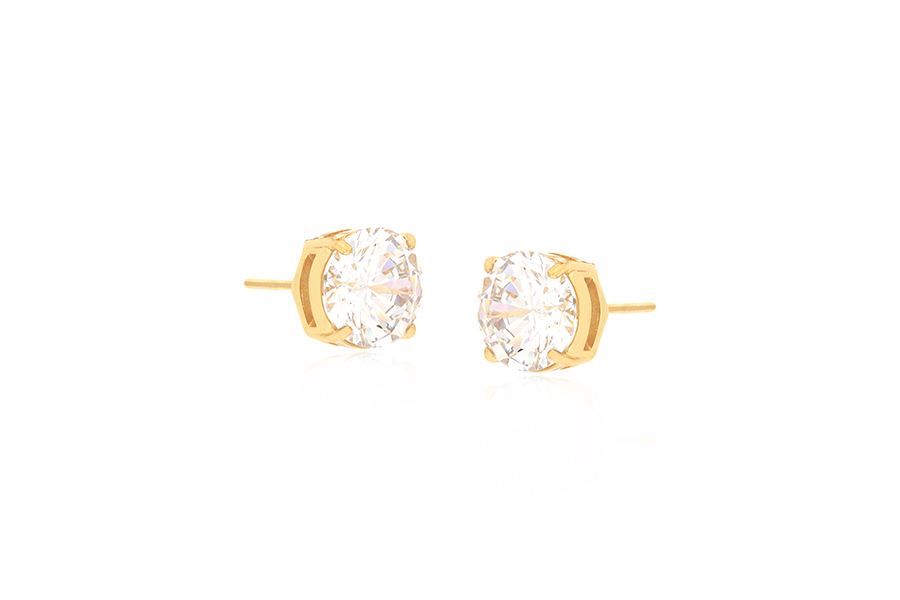 BRINCO BANHADO EM OURO, PONTO DE LUZ 8mm, LINHA TRADICIONAL