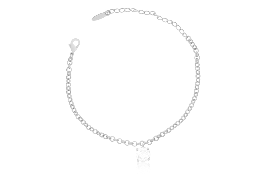 PULSEIRA BANHADA EM RÓDIO BRANCO, ELO PORTUGUÊS 2,50mm, 16cm COMPRIMENTO, EXTENSOR 5cm COMPRIMENTO, PONTO DE LUZ, GRATIDÃO E AMOR 12mm DIÂMETRO