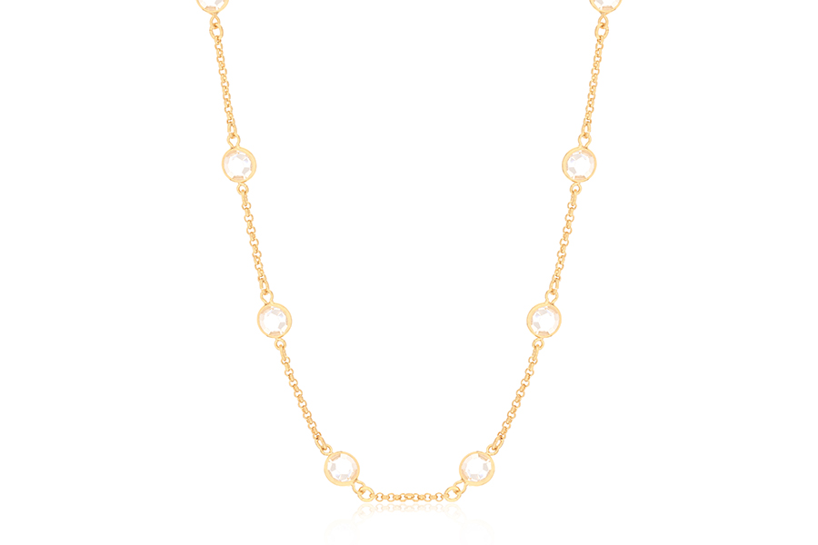 GARGANTILHA BANHADA EM OURO, CRISTAL FUSION RETANGULAR 10x8mm, ELO 1,50mm LARGURA, 40cm COMPRIMENTO E EXTENSOR 10cm COMPRIMENTO