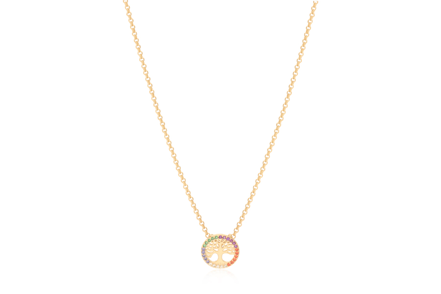 GARGANTILHA BANHADA EM OURO, ELO 2mm, 40cm COMPRIMENTO COM ZIRCÔNIAS QUADRADA 8 E 6mm COLORIDAS