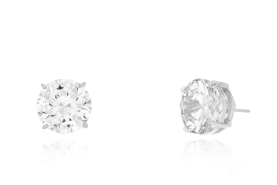 BRINCO BANHADO EM RÓDIO BRANCO, PONTO DE LUZ 5mm, CRAVAÇÃO INGLESA