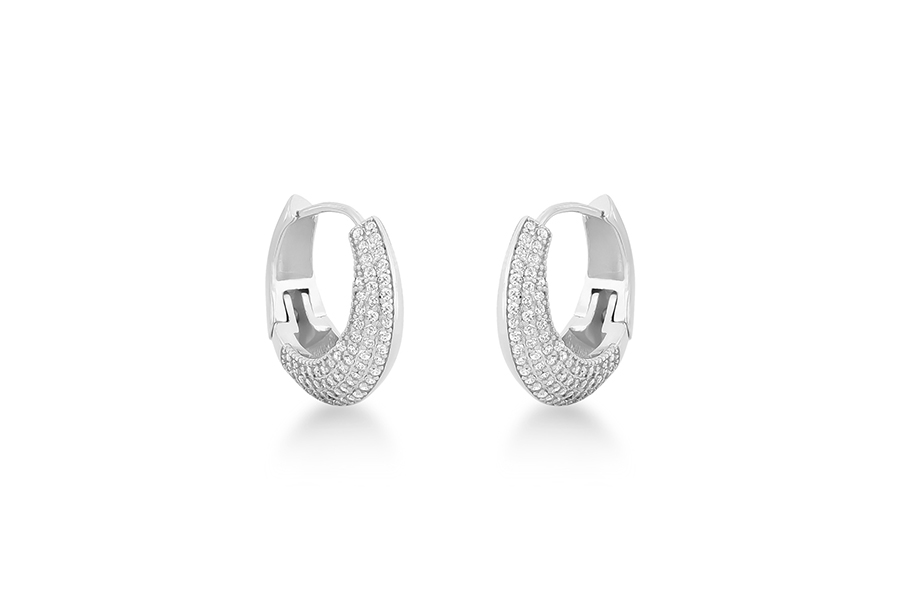BRINCO BANHADO EM RÓDIO BRANCO, INFINITO 11mm LARGURA COM ZIRCÔNIAS