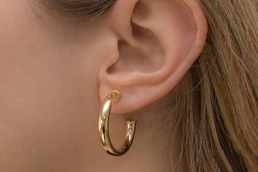 BRINCO BANHADO EM OURO, ARGOLA TRIANGULAR 22mm ALTURA, LISO OU ACETINADO, PROVIN OPAC