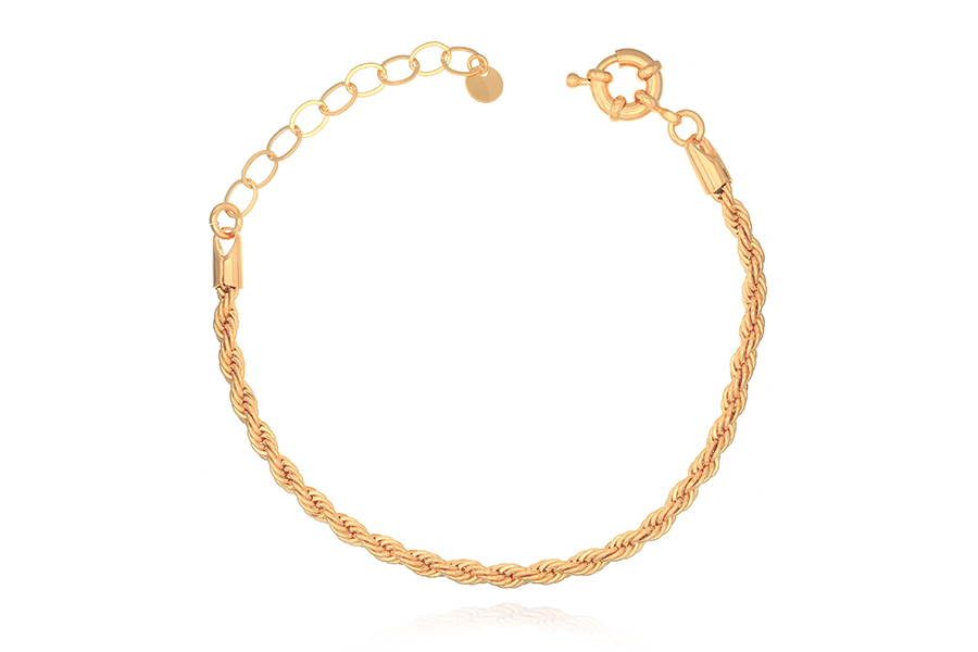 PULSEIRA BANHADA EM OURO, CORRENTE ELO CORDA 4mm, 17cm COMPRIMENTO, EXTENSOR 5cm E PESO 9,10g