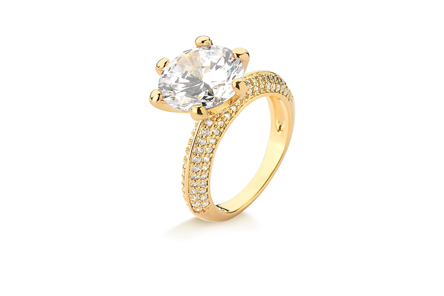 ANEL BANHADO EM OURO, 4,30mm LARGURA, EM ZIRCÔNIAS NAVETE