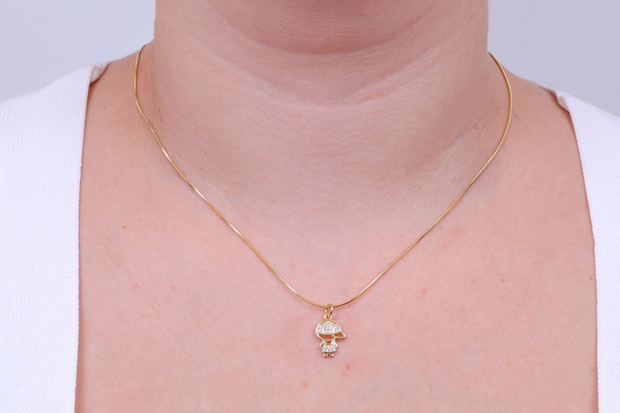 PINGENTE BANHADO EM OURO, MENINA 11mm ALTURA COM 3 ZIRCÔNIAS, COLEÇÃO COLLECT