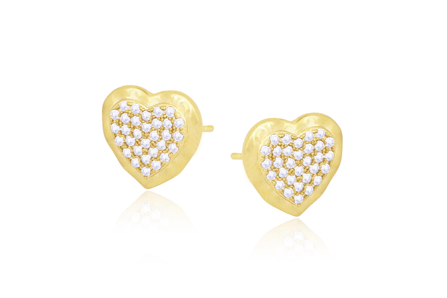 BRINCO BANHADO EM OURO, CORAÇÃO E PONTO DE LUZ 6mm ALTURA