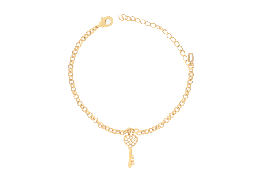 PULSEIRA INFANTIL BANHADA EM OURO, CORRENTE ELO 3,10mm LARGURA E 15cm COMPRIMENTO