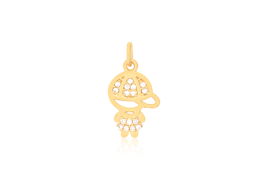 PINGENTE BANHADO EM OURO, MENINO, COM 2 ZIRCONIAS E 16mm ALTURA