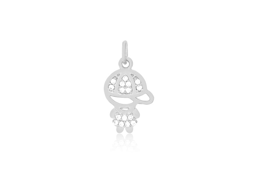 PINGENTE BANHADO EM RÓDIO BRANCO, MENINO 11mm ALTURA COM 3 ZIRCÔNIAS, COLEÇÃO COLLECT