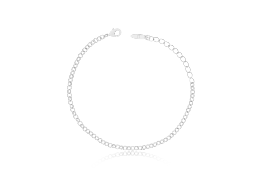 PULSEIRA BANHADA EM PRATA LEVE, CORRENTE ELO PORTUGUÊS 3mm, 16cm E 17cm COMPRIMENTO, EXTENSOR 5cm E PESO 2,60g
