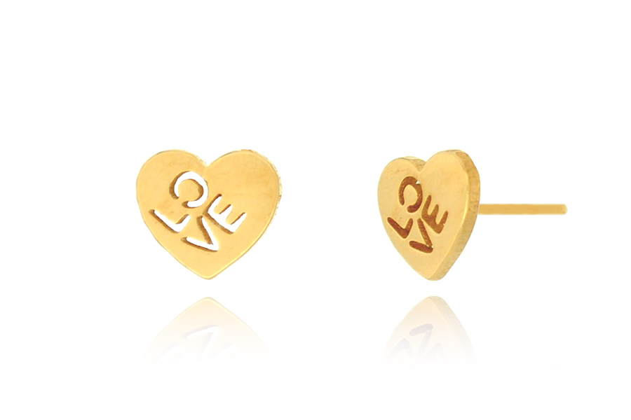BRINCO BANHADO EM OURO, CORAÇÃO E PONTO DE LUZ 6mm ALTURA