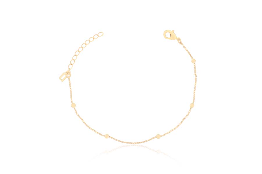 PULSEIRA BANHADA EM OURO, ELO OVAL 1,10mm, ESFERAS 2,40mm, 12cm E 14cm COMPRIMENTO E EXTENSOR 3cm