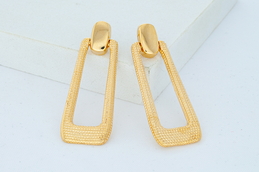BRINCO BANHADO EM OURO, ARGOLA TRIANGULAR 22mm ALTURA, LISO OU ACETINADO, PROVIN OPAC